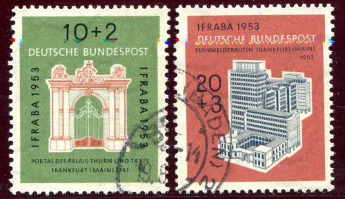 1953 Mi.Nr. 171/72 , Internationale Briefmarkenausstellung "IFRABA", mit Rundstempel, kompletter Satz.