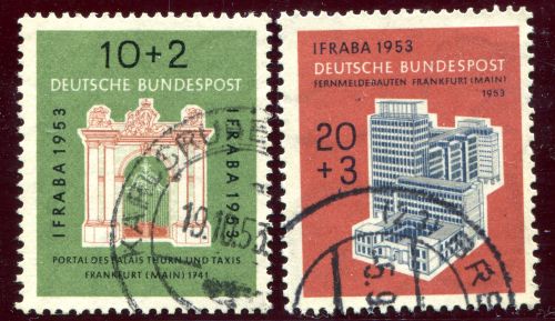 1953 Mi.Nr. 171/72 , Internationale Briefmarkenausstellung "IFRABA", mit Rundstempel, kompletter Satz.