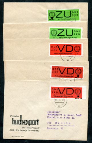 1968 DDR ZKD4a , , 3 Belege (Vertrauliche Dienstsache) gezähnt und geschnitten. 2 Belege (Mit Zustellungsurkunde) gezähnt und geschnitten. Deutscher Buch - Export 108 Berlin.