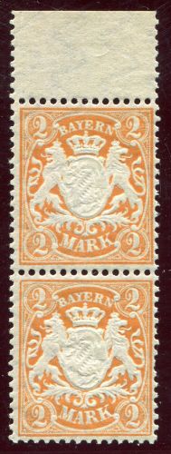 1890 Mi.Nr. 64 , , Bayern 2 Mark mit Oberrand, senkrechtes Paar.