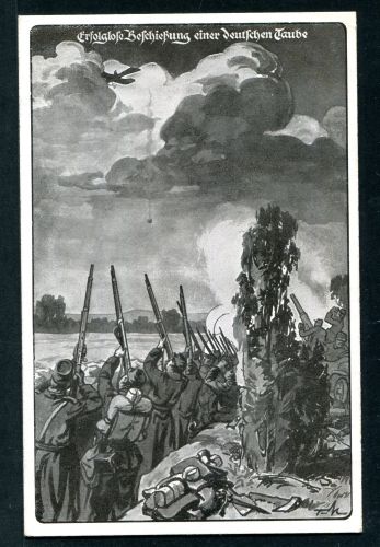 Postkarte Zeppelin. Erfolglose Beschießung einer deutschen Taube, ungebraucht.