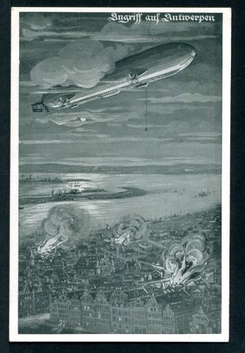 Postkarte Zeppelin. Angriff auf Antwerpen. ungebraucht.