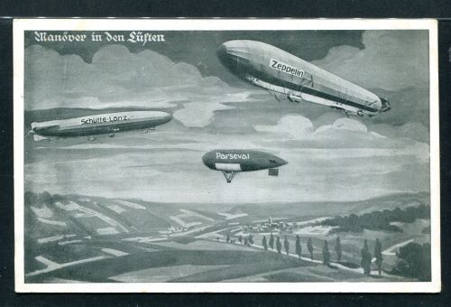 Postkarte Zeppelin. Manöver in den Lüften, ungebraucht.