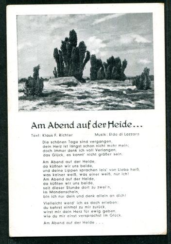 LIEDERKARTE. Am Abend auf der Heide, ungebraucht.