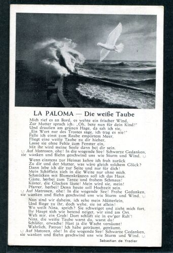 LIEDERKARTE. LA PALOMA - Die weiße Taube, ungebraucht.