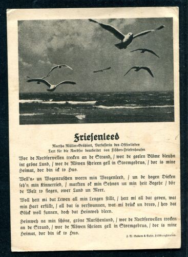 LIEDERKARTE. Friesenlied. Wor de Nordseewellen trecken an de Strand, ungebraucht.