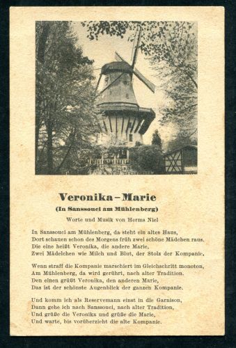 LIEDERKARTE. Veronika - Marie. (In Sanssouci am Mühlenberg), ungebraucht.