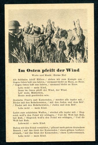 LIEDERKARTE. Im Osten pfeift der Wind. Als Soldaten Adolf Hitlers, ungebraucht.