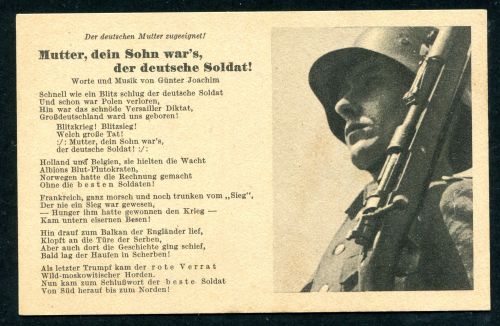 LIEDERKARTE. Mutter, dein Sohn war's, der deutsche Soldat, ungebraucht.