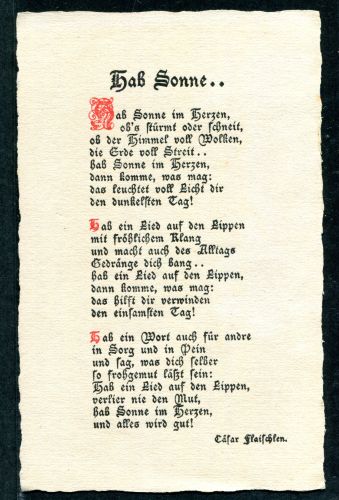 LIEDERKARTE. Hab Sonne im Herzen, ob's stürmt oder schneit, ungebraucht.