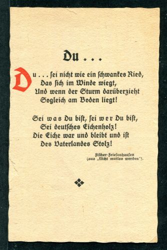 LIEDERKARTE. Du... "Du ... sei nicht wie ein schwankes Rie", ungebraucht.