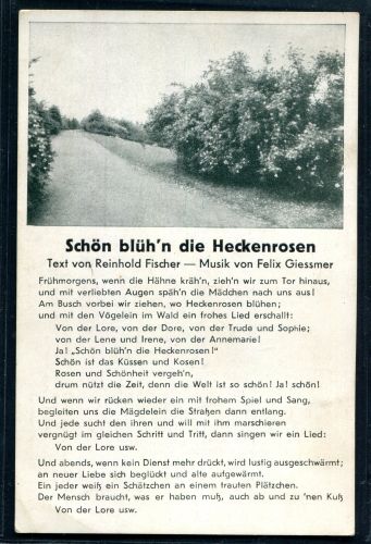 LIEDERKARTE. Schön blü'n die Heckenrosen, ungebraucht.