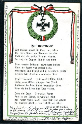 GEDICHT. Heil Österreich! Wir müssen allzeit die Treue uns halten, befördert ab Dresden nach Wien 12.12.15