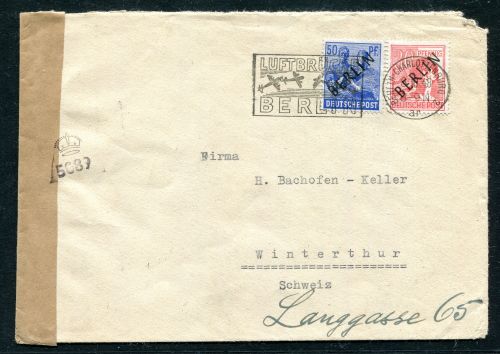 1948 Mi.Nr. 11 und 13 , , MiF, mit Luftbrückenstempel, Auslandsbrief mit Zensur, ab Berlin 8.10.48 nach Winterthur (Schweiz)
