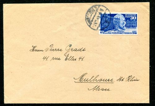 1949 Mi.Nr 116 , , EF Frankatur. 75 Jahre Weltpostverein, befördert ab Wiesbaden nach Mülhausen. Mi. 130.--Euro.