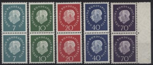 1959 Mi.Nr. 182/86 , , Heuss III, kompletter Satz, 70 Pfennig mit Seitenrand rechts.