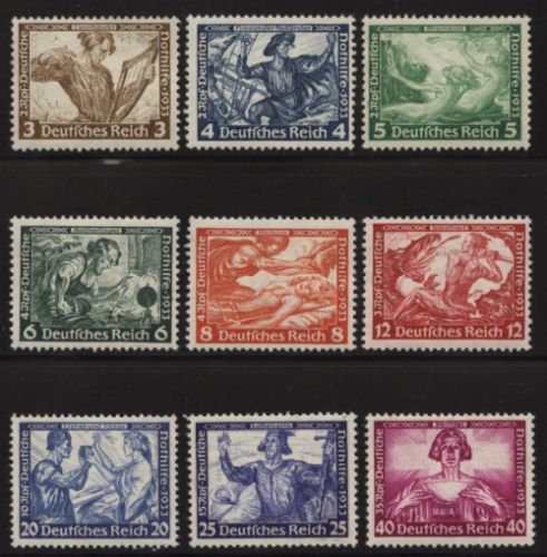 1933 Mi.Nr. 499/507A , Deutsche Nothilfe, kompletter Satz mit 505B, in üblicher Zähnung. 3 Pfennig rechte obere Ecke minimal braun. Mi.(2.200.--)Euro.