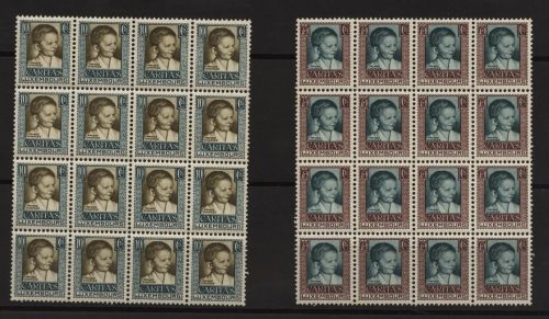 1930 Mi.Nr. 227/31 , Kinderhilfe, 16 komplette Sätze, im Bogenteil, vereinzelt minimale braune Flecken. Mi.(750.--)Euro.