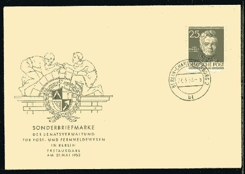 1952 Mi.Nr. 98 , , FDC, 25 Pfennig. Männer aus der Geschichte Berlins. Mi.(30.--)Euro.