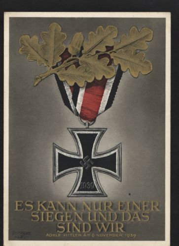 1939 Propagandakarte "ES KANN NUR EINER SIEGEN UND DAS SIND WIR". Adolf Hitler am 8. November 1939, ungebraucht, in guter Erhaltung. Foto im Internet.