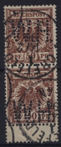LIQUIDATIONSPOSTEN. 1889 Mi.Nr. 50d , 50 Pfennig Adler Krone, senkrechtes Pärchen mit anhängenden Zwischensteg an der unteren Marke.