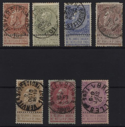 1893 Mi.Nr. 53/59 , König Leopold II. kompletter Satz in guter Zähnung und schöne Rundstempel. Mi.(110.--)Euro.