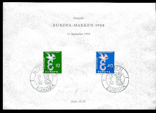 1958 Mi.Nr. 295/96 , Europamarken beide Werte auf Sonderblatt mit Ersttagsstempel BONN. 3 Blätter. Mi.(150.--Euro).