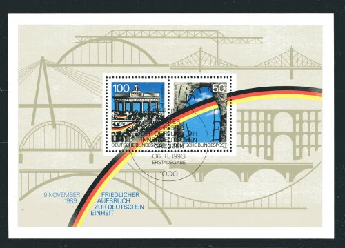 1990 Block 22 , Berliner Mauer mit Plattenfehler (roter Strich im unteren Ende des gelben Regenbogenstreifen), selten.