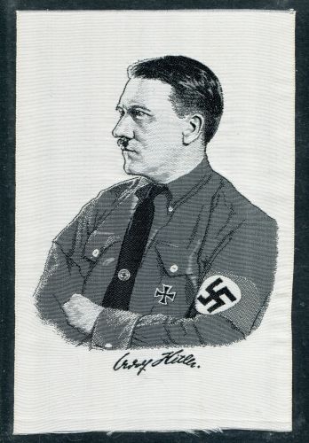 ADOLF HITLER Selbstbildnis auf Seide gestickt, fast in Postkartengröße, nur bei mir in Original erhältlich. SEHR SELTEN !!!