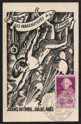 1949 Fremdenlegion SIDI - BEL - ABBES mit Marke von Frankreich Mi. Nr. 938 Tag der Briefmarke und Sonderstempel.