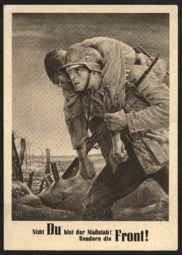 1943 Propaganda Karte. "Nicht DU bist der Maßstab! Sondern die FRONT!", mit Marke Generalgouvernement und Sonderstempel "Tag der NSDAP Krakau 13.-15. VIII. 1943", nicht befördert.
