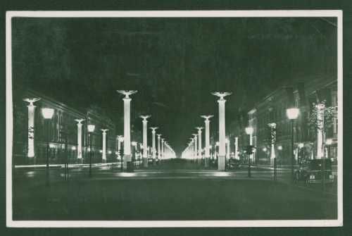 1939 BERLIN "Unter den Linden bei Nacht", mit DR 6 Pfennig. Hitler Berlinstempel 10.5.42 und Rahmenstempel "Vorsicht mit Feuer in Wald und Heide", echt befördert nach Wilhelmshaven", in feiner Erhaltung.