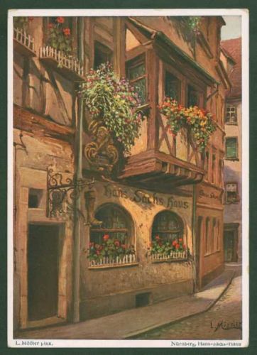 1942 NÜRNBERG. Hans - Sachs - Haus, ungebraucht Farbkarte, minimale Randspuren.