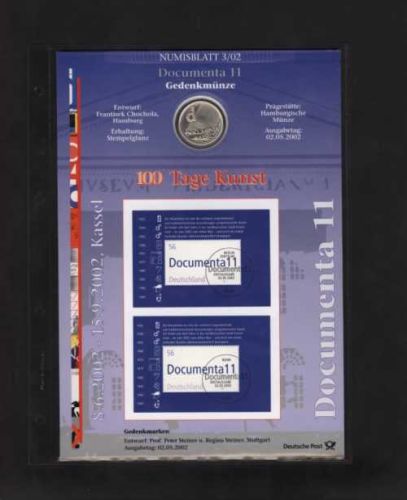 Numisblatt 2002/3 100 Tage Kunst. Documenta 11 in Kassel, mit 10 EURO Sondermünze und Bundesrepublik Block 58 2 Stück.