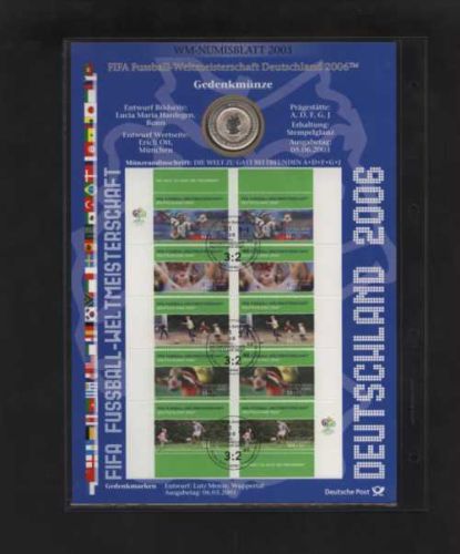 Numisblatt 2003/4 FIFA XVIII. Fußball - Weltmeisterschaft 2006 in Deutschland - 1. Ausgabe, mit 10 EURO Sondermünze und Bundesrepublik Kleinbogen Nr. 2324/28