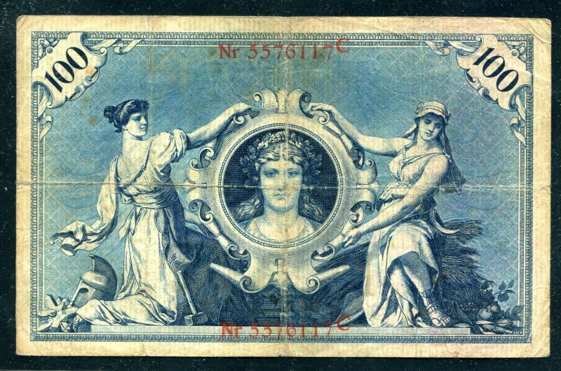 LIQUIDATIONSPOSTEN.1903 Reichsbanknote 100 Mark. Rosenberg Katalog Nr. 20 mehrmals gefaltet.