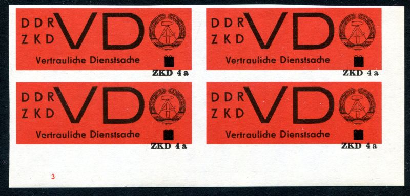 1965 Mi.Nr. 3y , mit Eindruck ZKD 4a, vom Unterrand mit Plattennummer 3, selten.