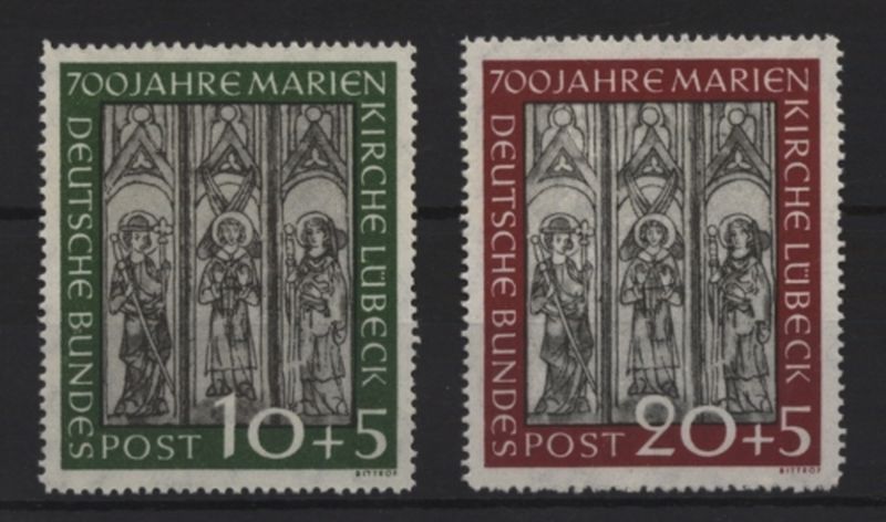 1951 Mi.Nr. 139/40 , Marienkirche Lübeck, kompletter Satz. Mi.(200.--)Euro.