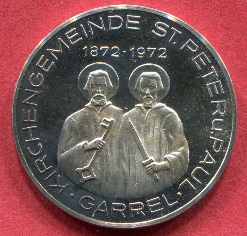 1972 100 Jahrfeier Gemeinde St. Peter u. Paul GARREL, sowie 100 Jahre GARREL. Medaille in 835/1000 Silber. Prägefrisch. FOTO TITELSEITE.