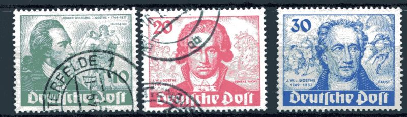 1949 Mi.Nr. 61/63 , Johann Wolfgang Goethe, kompletter Satz Rundstempel. Mi.(180.--)Euro.
