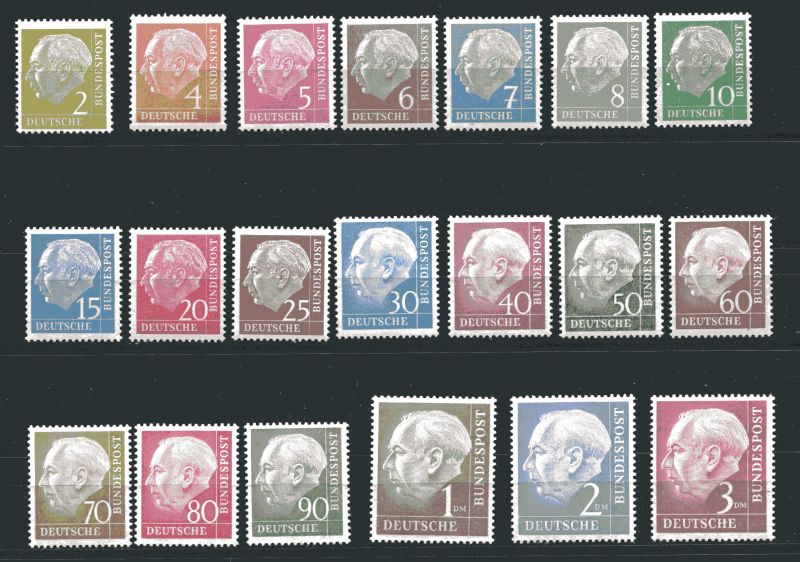 1954 Mi.Nr. 177/96X, , Freimarken Theodor Heuss (I), kompletter Satz. Mi.(280.--)Euro.