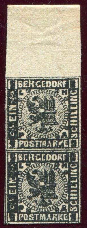 1861 Mi.Nr. 2 (), , 1 S, senkrechtes Paar mit Oberrand, schwarz auf weiß.
