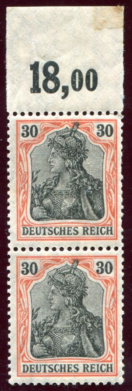 1905 Mi.Nr. 89I x, , , mit Oberrand, 30 Pfennig Germania, senkrechtes Paar. "OBERRAND". Mi. (780.--) Euro.