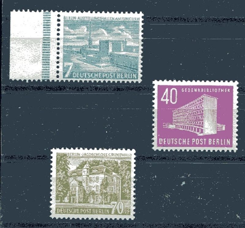 1954 Mi.Nr. 121/23 , Berliner Bauten, kompletter Satz. Nr. 121 mit Seitenrand links. Mi.(130.--)Euro.