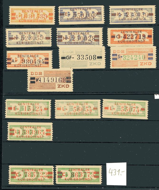 1958 bis 1959 DDR ZKD - Marken 22 Werte , auf 3 Steckkarten. Mi. nach A.d.E. (431.--) Euro.