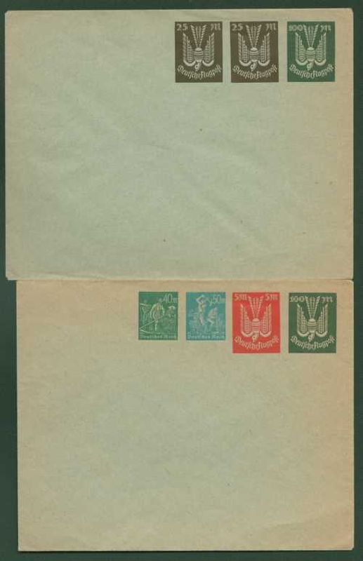 Deutsches Reich Ganzsachenumschlag PU 91 und PU 29, Flugpostmarken, ungebraucht, minimal an den Rändern gebräunt.