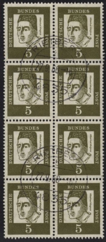 1961 Mi.Nr. 347y , 5 Pfennig Bedeutende Deutsche, im 8er Block.