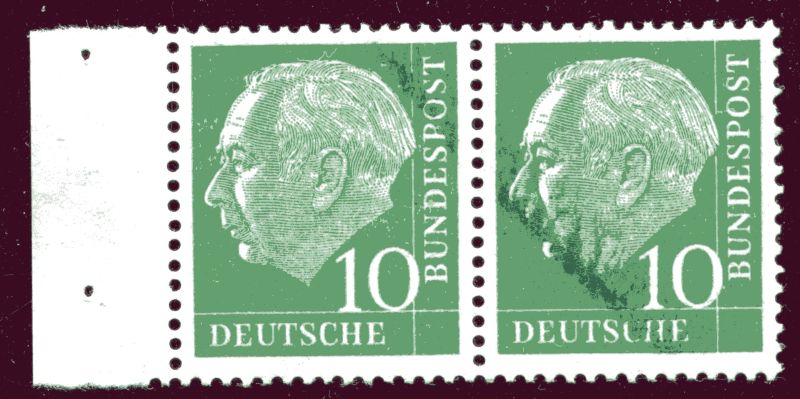 1954 Mi.Nr. 183xWv , , schräger Strich der Druckfarbe schwarz durch beide Marken. Selten.