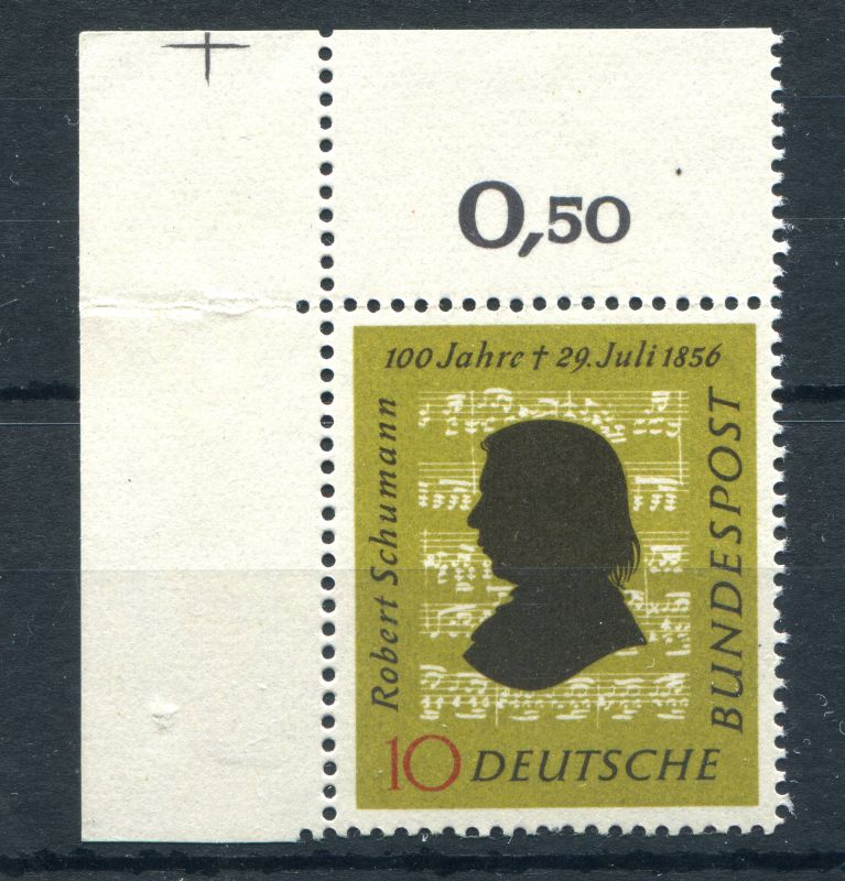 1956 Mi.Nr. 234 , Robert Schumann, 10 Pfennig aus der Bogenecke oben links.