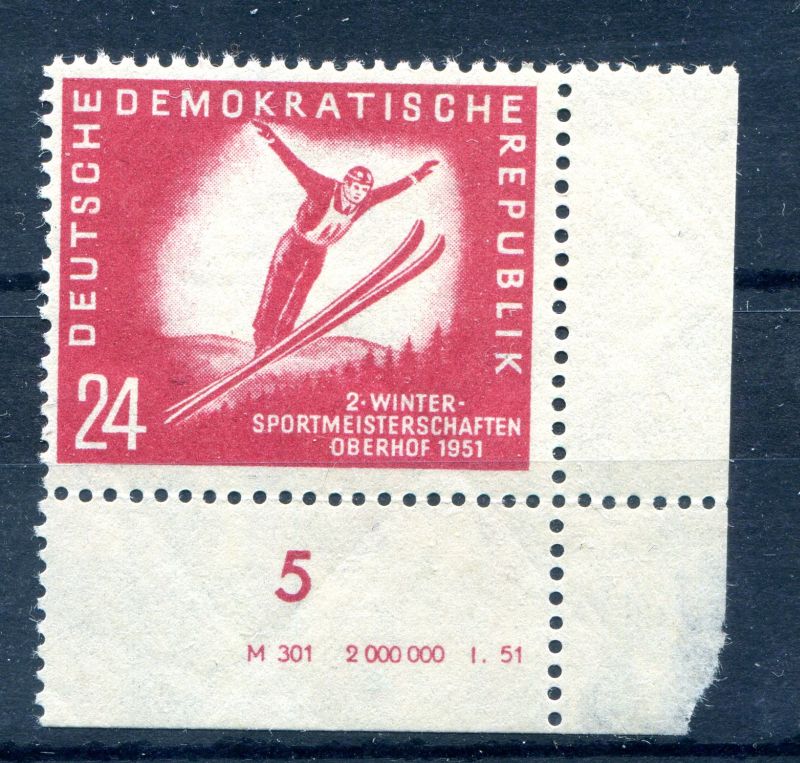 1951 Mi.Nr. 281 , 24 Pfennig rechte Bogenecke mit Druckvermerk (DV 5) Rückseite am Bogenrand schwarze Haftstellen von schwarzer Steckseite, sonst .